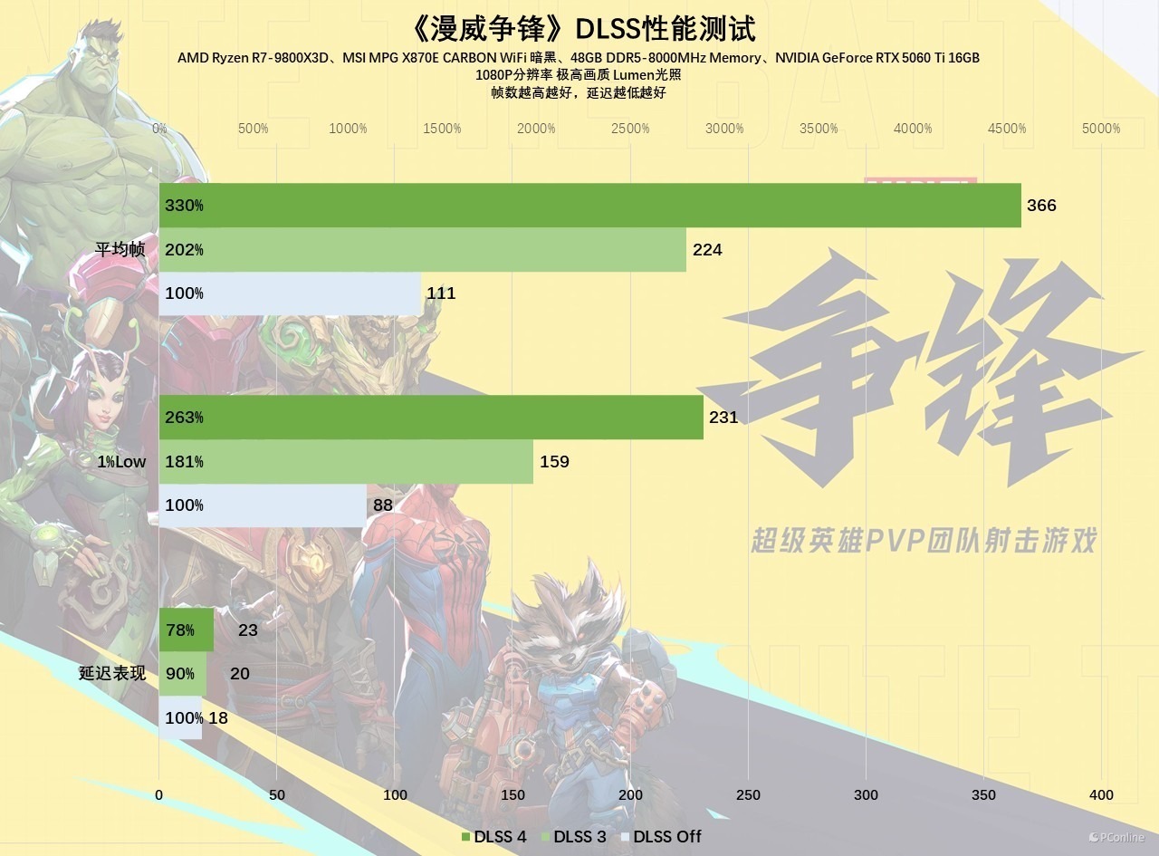 最后一款游戏是我们的老熟人《漫威争锋》,这款游戏在RTX 50系显卡首发之时,它还没有完全适配DLSS 4,玩家想要体验多帧生成功能还需要依靠NVIDIA App的DLSS 4优设功能。不过现在《漫威争锋》也正式支持DLSS 4了,与上面的游戏一样,玩家在游戏设置中就能直接开启,并且提供了2x、3x以及4x选项,玩家可以随意选择是插一帧、插两帧还是插三帧。
