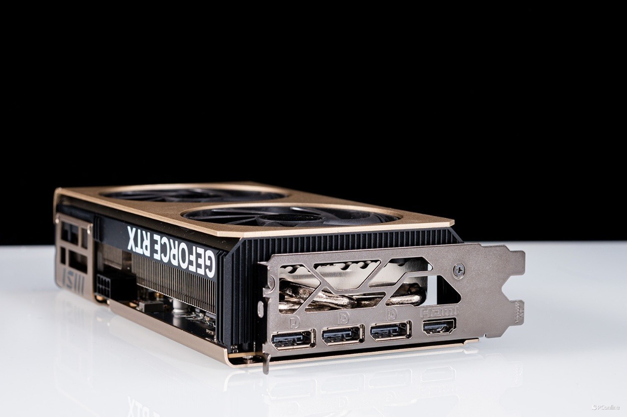 再看显卡的顶部,分别是“GEFORCE RTX”以及“MSI”的标识,给单调的侧边增添了装饰效果。显卡横装时也能让人一眼看出这是来自微星的NVIDIA显卡。