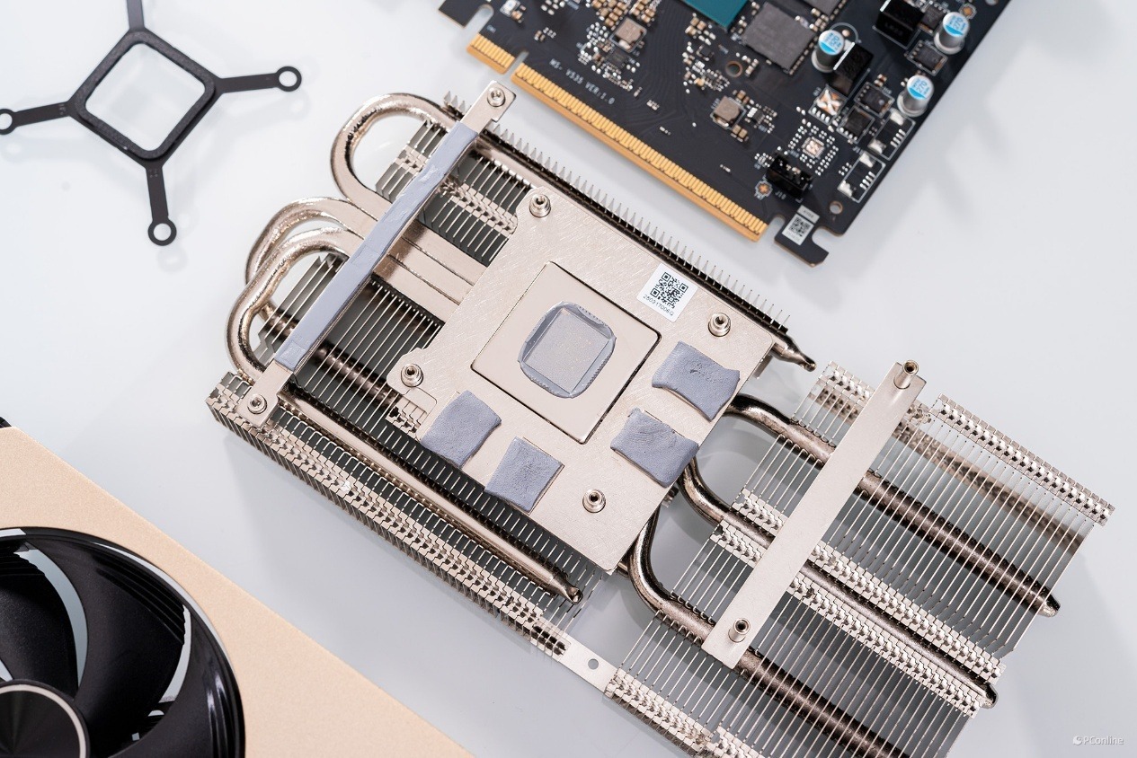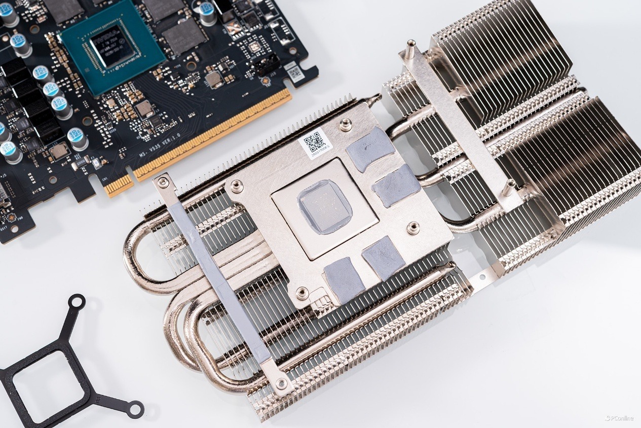 下面看看这款显卡的散热设计,整张显卡的散热系统还是相当有份量的,整个散热系统可分为三部分,分别是散热器主体、金属背板以及主动散热风扇。