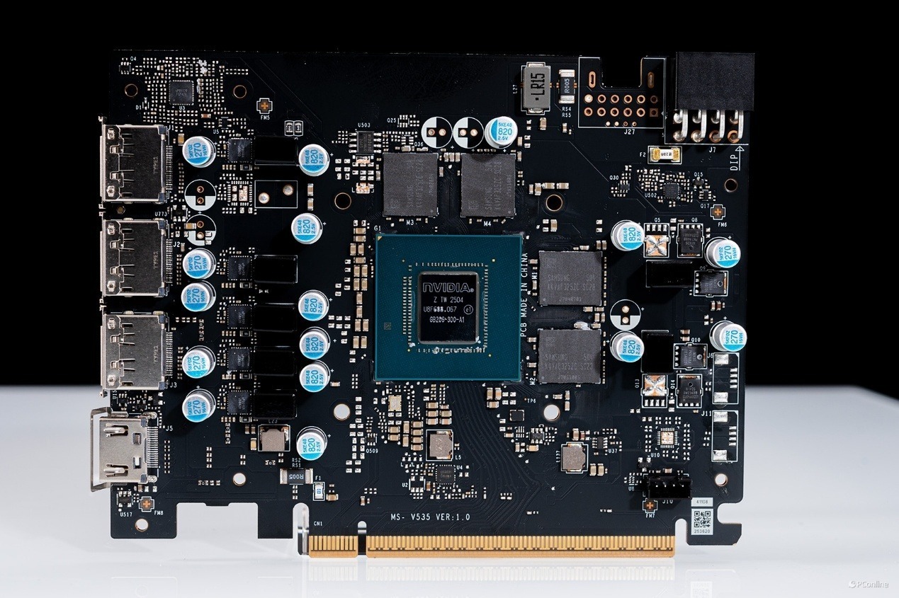 首先看看显卡的PCB设计。有一说一,微星GeForce RTX 5060 Ti INSPIRE 2X 硬派师16GB的PCB可以用小巧玲珑来形容。