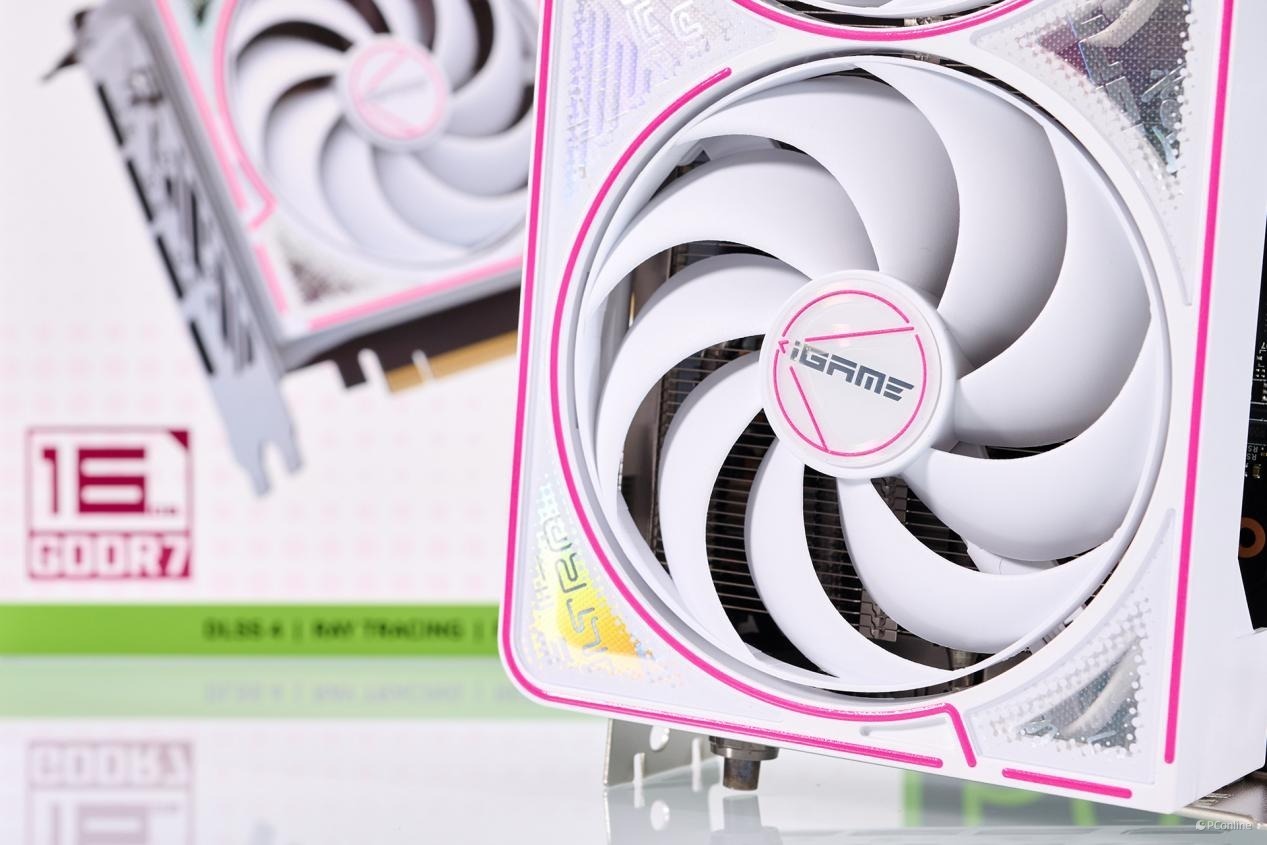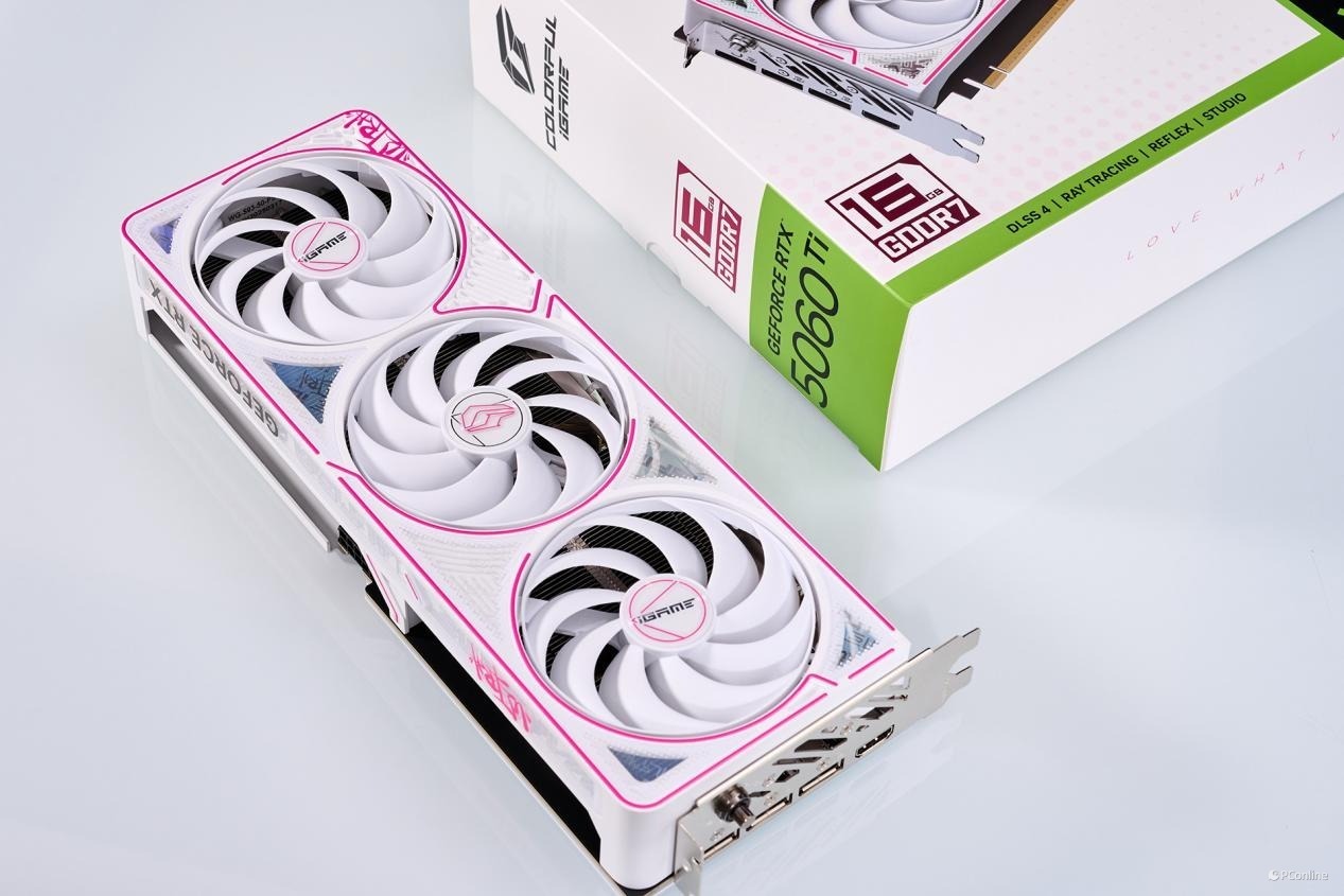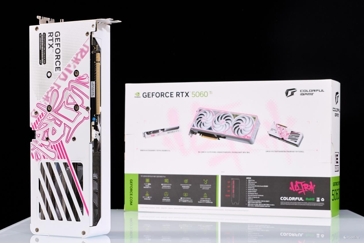 iGame RTX 5060 Ti Ultra W OC 16GB以纯净的白色作为基底,搭配上活力四射的粉色描边,形成鲜明却又和谐的对比,瞬间打破了传统显卡外观给人的沉闷印象,为显卡注入了鲜活的潮流气息。