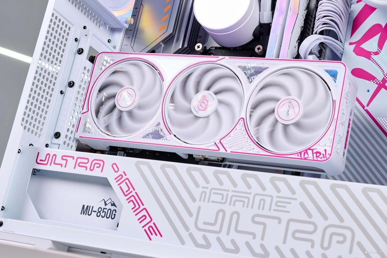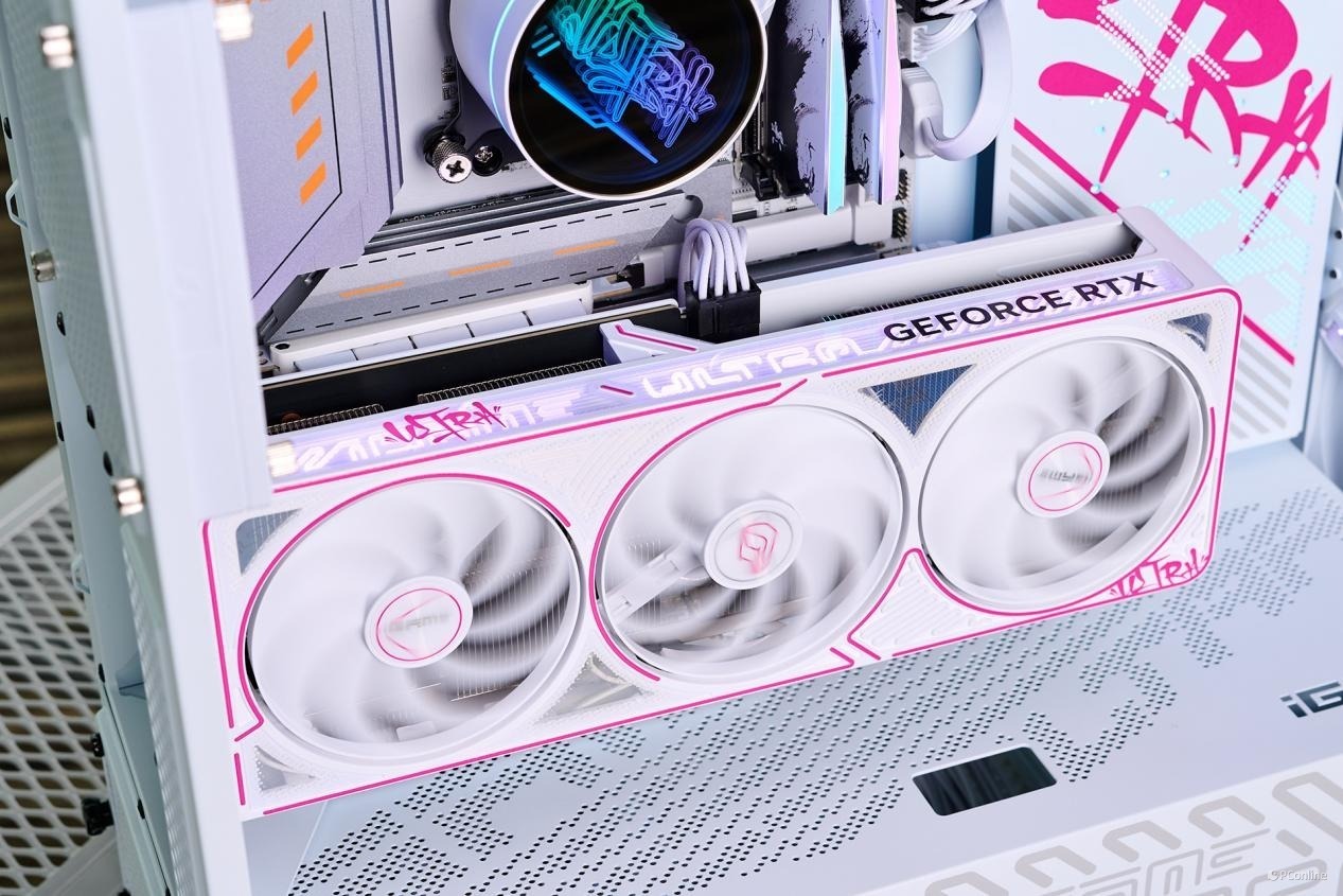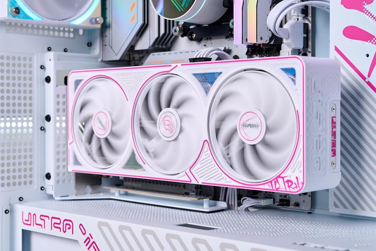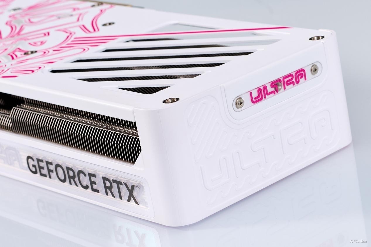 iGame RTX 5060 Ti Ultra W OC 16GB以纯净的白色作为基底,搭配上活力四射的粉色描边,形成鲜明却又和谐的对比,瞬间打破了传统显卡外观给人的沉闷印象,为显卡注入了鲜活的潮流气息。