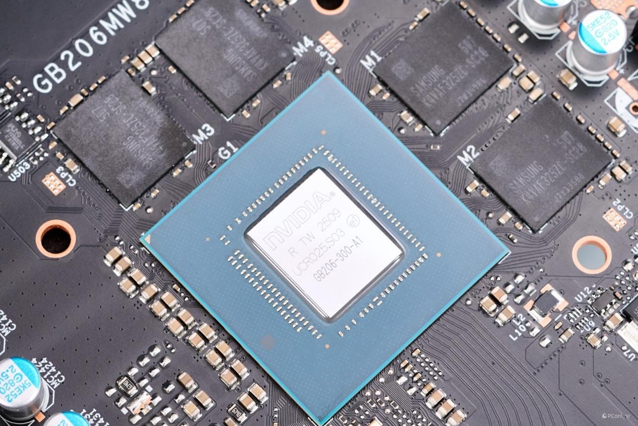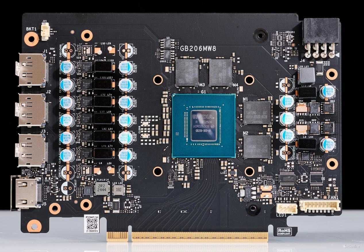 181mm²面积的GB206-300-A1核心真是小巧,大小基本与旁边的GDDR7颗粒相仿