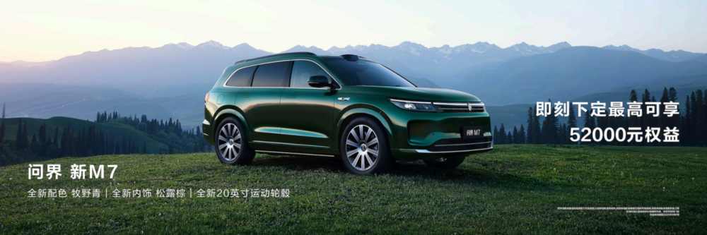 鸿蒙智行丨问界 新M7全新“牧野青”配色上市,智享美学与科技新境界