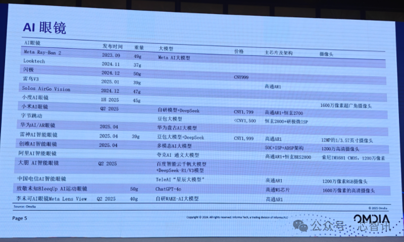 从整个AI和AR眼镜的零组件来看,主要是主芯片、显示屏、摄像头和软件(大模型)几个方面。但是无论选择什么样的零组件组合,都需要在性能、成本和续航之间要找到一个平衡。目前来看,性能好、续航长的,成本就会增加;成本要便宜,整个续航性能就会差一些。