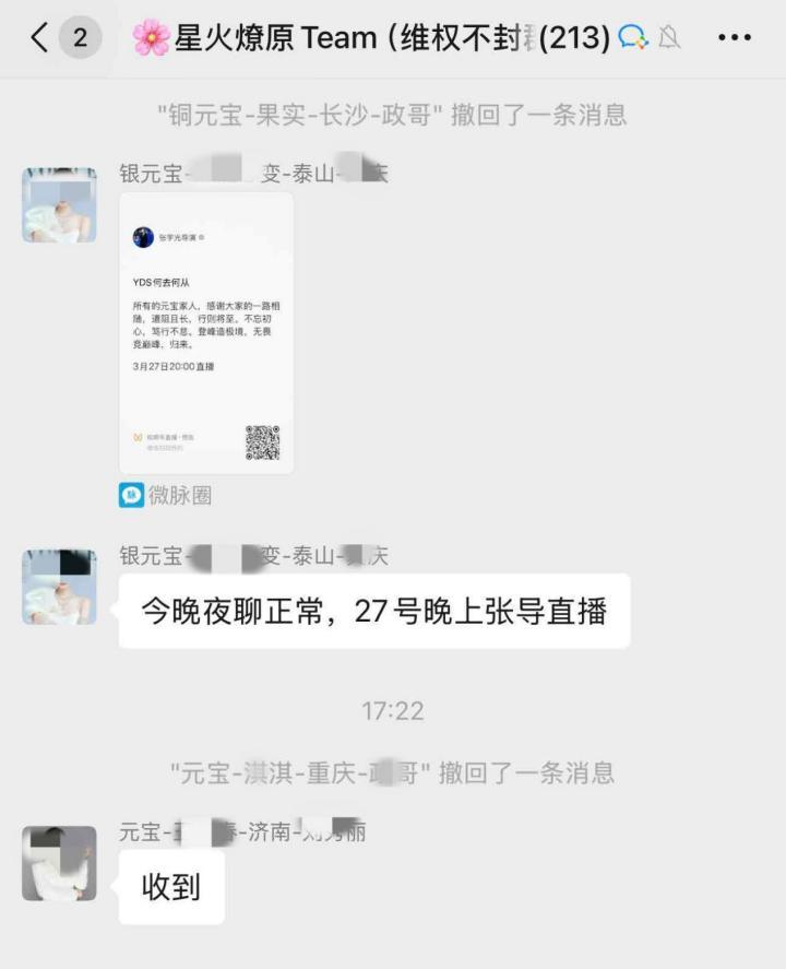 博主即胡婧推荐人把她拉进一个叫“元点短视频推广-星火燎原Team”的微信群。群里每个人的头像都是海马体公式照,不知道的还以为进了哪个大厂高管群。每个人的名字都是金、(银、铜)元宝+推荐人+地区+本人名字。
