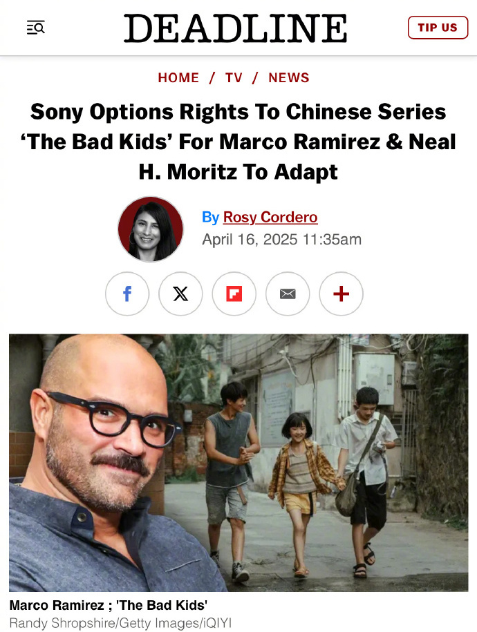 4月17日,据环球网文娱援引Deadline报道,索尼影视已获得国产热门悬疑/犯罪剧集《隐秘的角落》 (The Bad Kids)改编权,美剧版《隐秘的角落》将由索尼影业电视部、《速度与激情》系列制片人尼尔·H·莫瑞兹的制作公司Original Film和爱奇艺联手打造,马可·拉米雷兹(《Netflix剧版夜魔侠》《捍卫者联盟》)担任运作人、首集编剧和执行制作人。