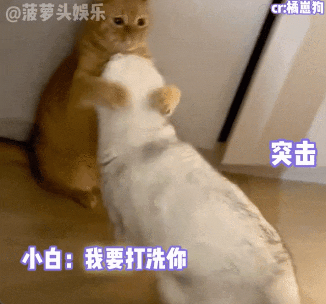 不料,一旁的小白不按套路出牌,忽然冲进了它的怀里!