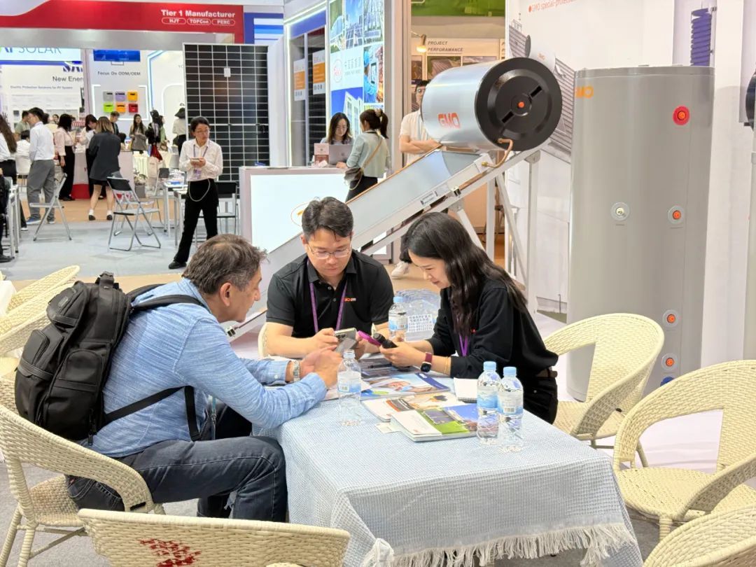 作为广交会上的“老面孔”,江苏迈能高科技有限公司 一如既往表现亮眼,展出的新款可远程监控冷媒热泵一体机,采用先进科技,既让能效利用再创新高,又能让热水“即时可及”;江苏玖顺农业机械有限公司 则亮出拳头产品,主推的2ZG-630D插秧机具有动力强劲、低耗油、适用多种场景等特性,吸引了不少客商驻足交流……参展企业生动展示了靖江制造在践行绿色发展理念方面的突出成效,也体现了企业发展新质生产力的积极追求。