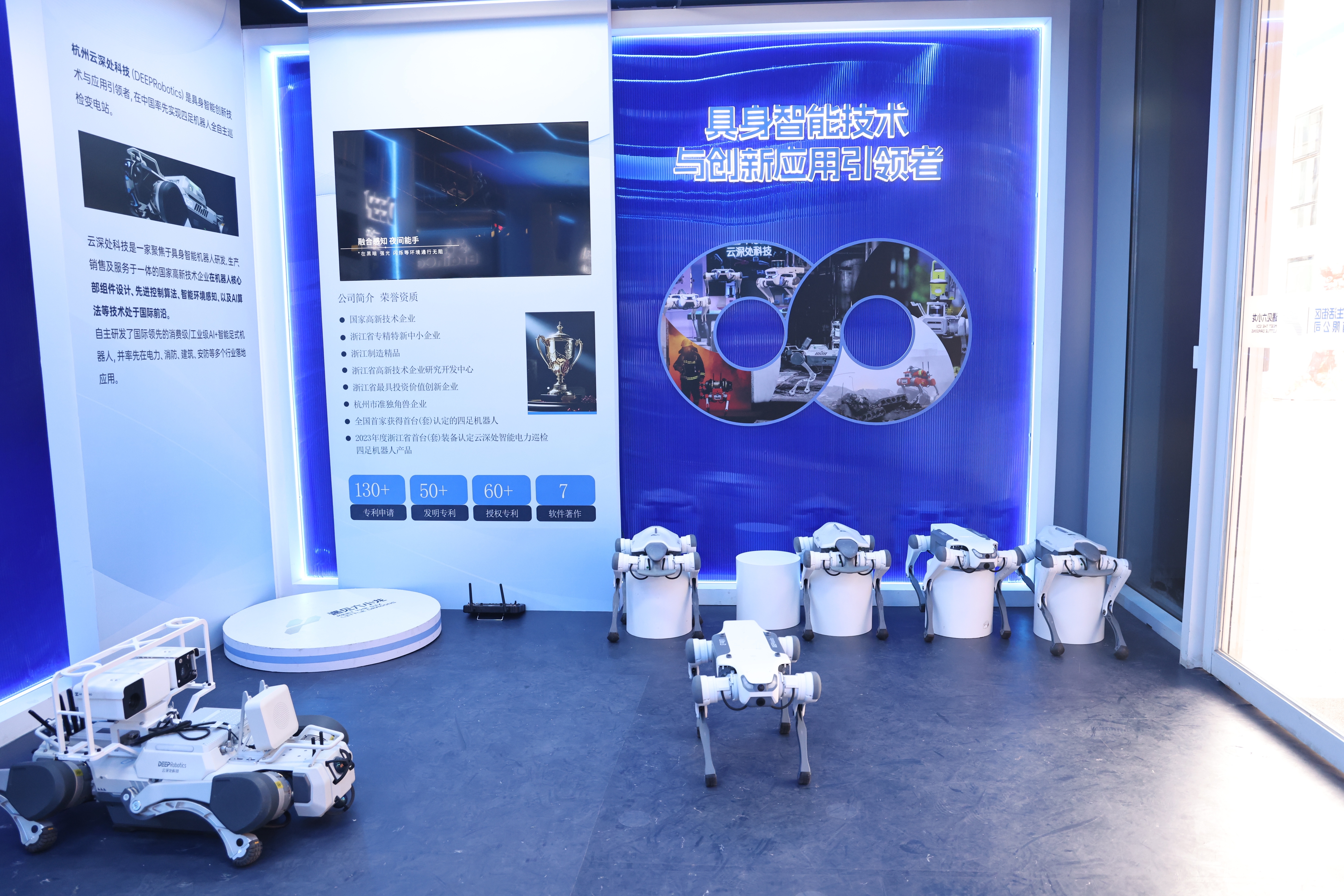 “这是我们西湖区本土科技企业的骄傲。”中心讲解员徐源路告诉记者,云深处科技带来的不仅是会表演的“绝影Lite”,更有实力派选手——“绝影X30”巡逻机器人。记者了解到,这款工业级机器人即将在文三数字生活街区“上岗”,24小时执行智能巡检、异常报警等任务,用科技力量提升安保效率。