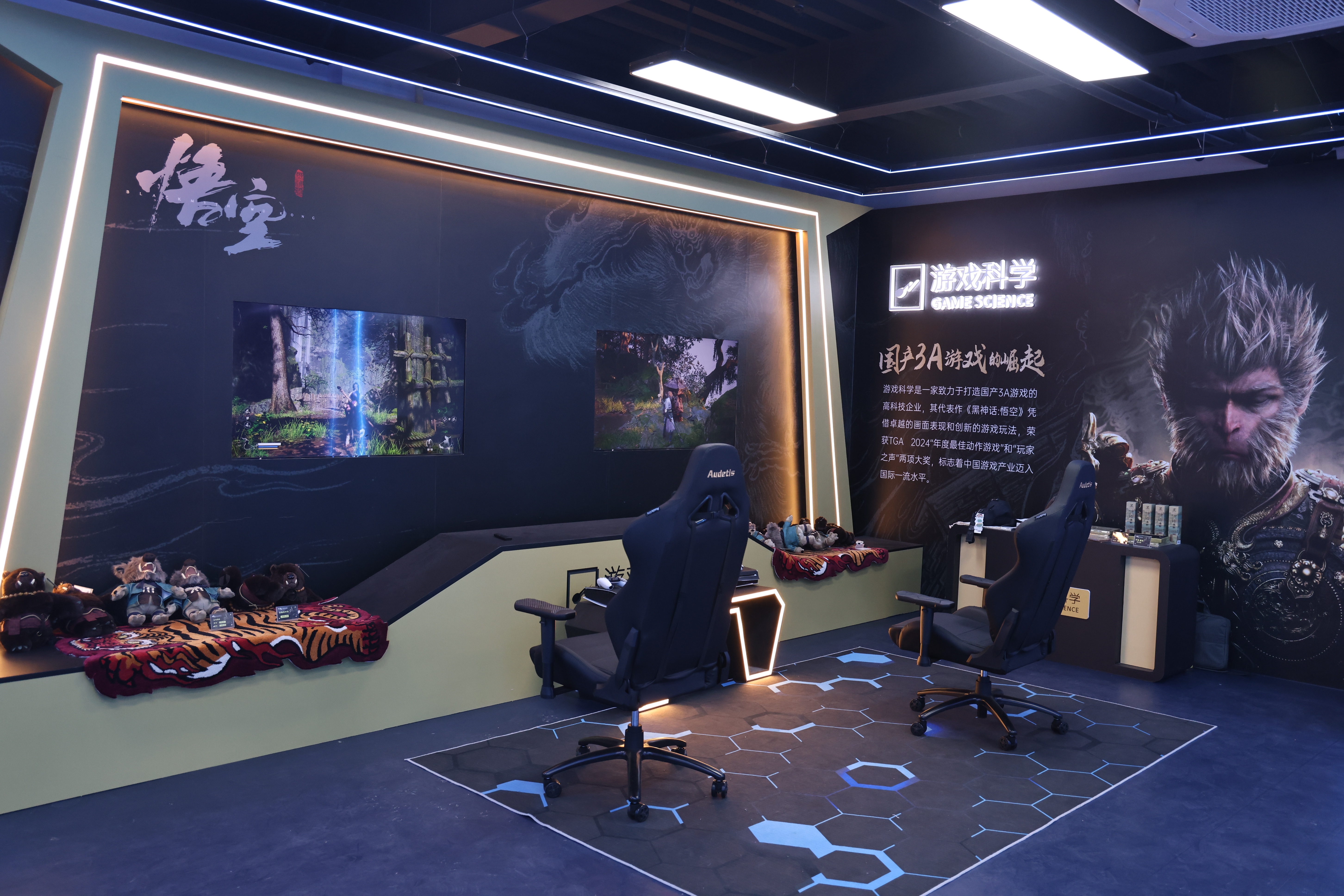 在0101PARK广场的文三未来科技体验中心临时展厅则掀起另一股科技热潮。走进展馆,云深处科技的“绝影”机器狗秀出连翻跟头的绝活,宇树科技的仿生机械臂与观众友好“握手”,《黑神话:悟空》试玩区更是排起了长队。