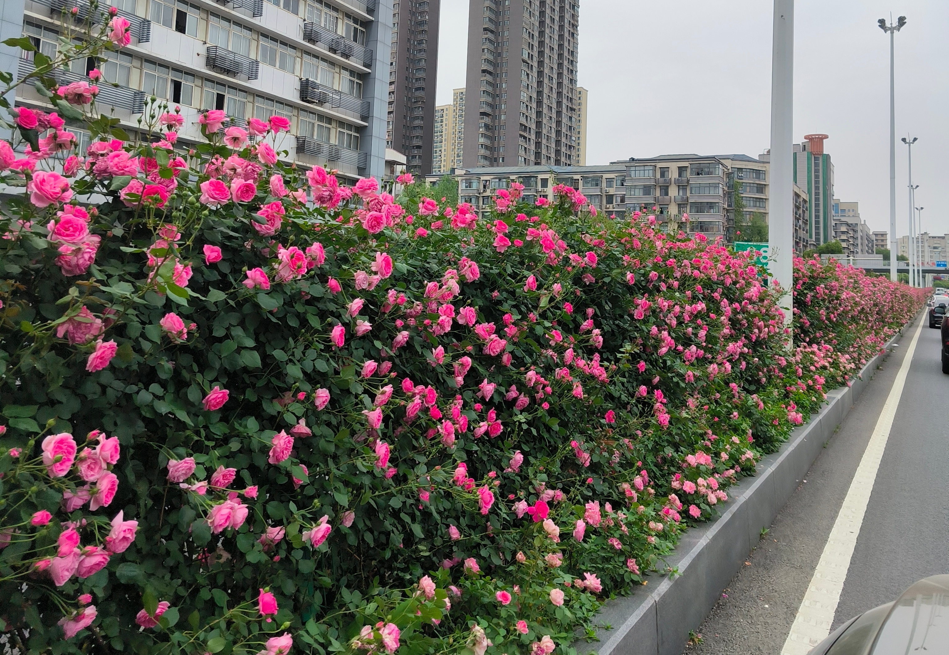 武汉城区主干道上的月季花带。图/受访者提供