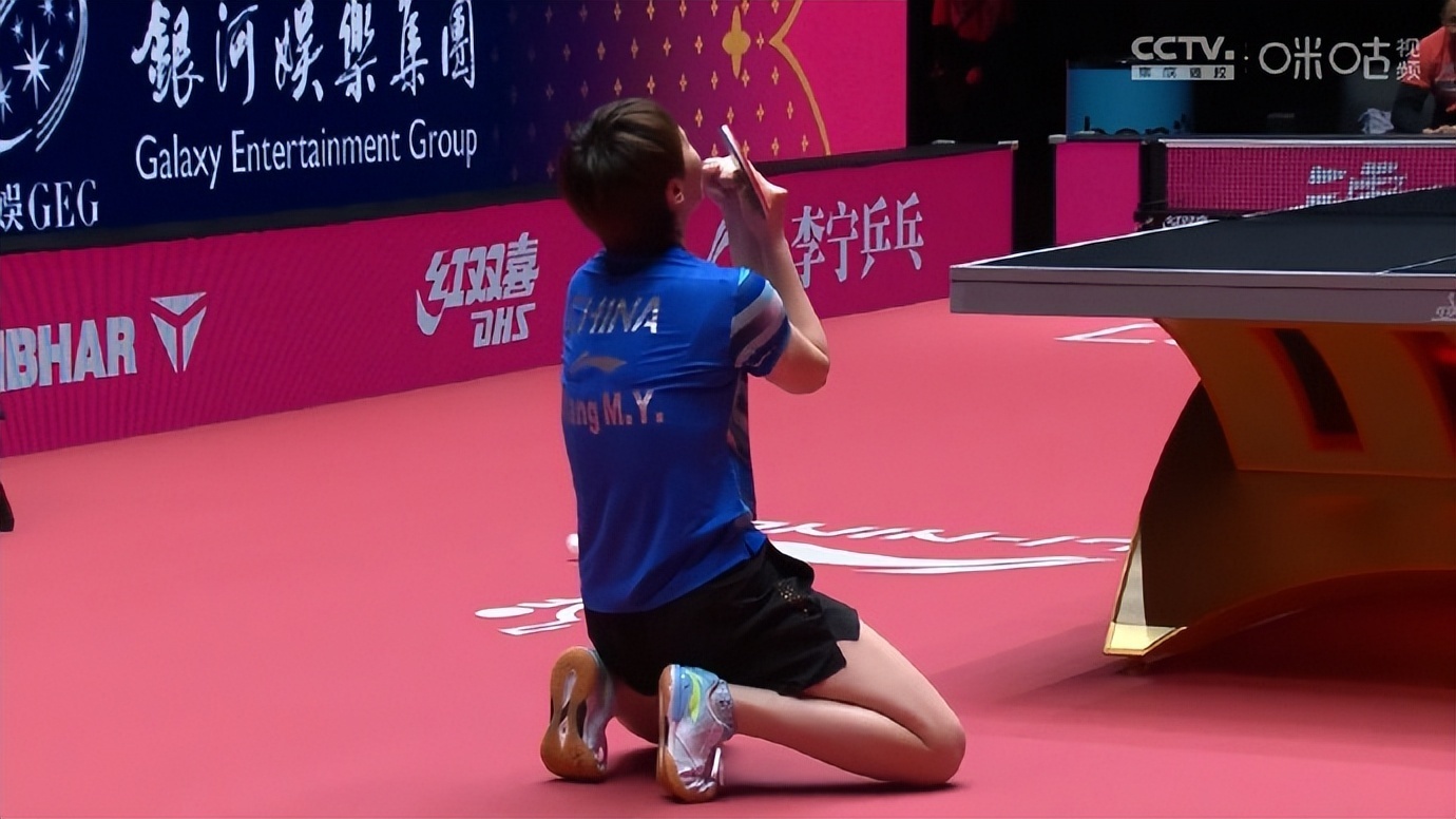 比赛结束后,王曼昱跪地庆祝。