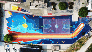 画作中的操场多姿多彩