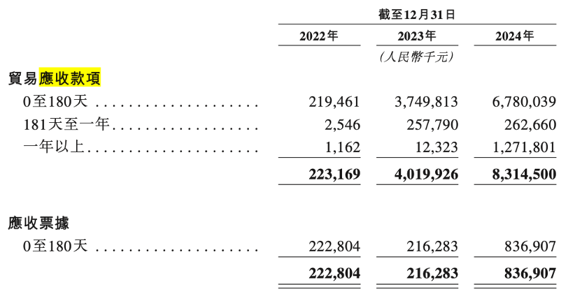 与此同时,海辰储能的贸易应收款项从2022年的2.23亿元飙升至2024年的83.15亿元,占营收比例高达69.5%,公司或有“纸面富贵”危机。