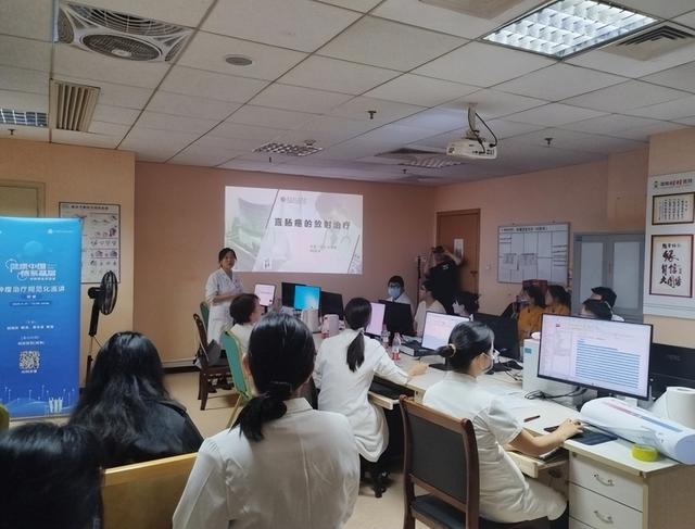 此外,湖南旺旺医院院内也积极开展防癌日相关活动。科室邀请到湖南省人民医院肿瘤二病区副主任田晓彩教授为大家作课题分享,田晓彩教授凭借深厚的知识底蕴,深入浅出地阐述了直肠癌诊断流程、分期标准、治疗原则和放疗适应症。