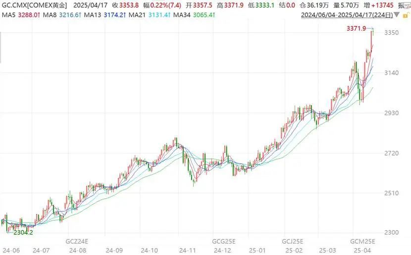 近期,国际金价屡创历史新高。COMEX黄金主力期货已攀升至3350美元/盎司上方,较年初大涨28%,较2024年2月更是暴涨65%。