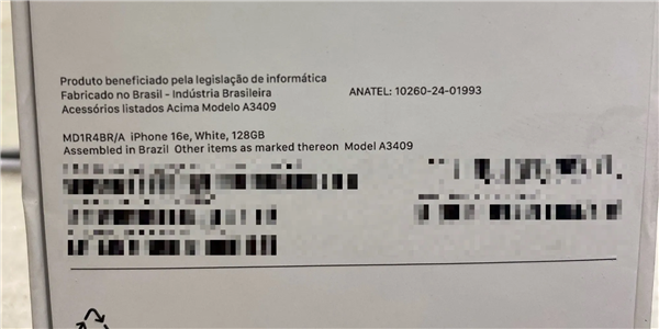最新曝光的iPhone 16e巴西版包装盒显示,盒子背部标签上标注着“Assembled in Brazil ”字样,表明这款手机是在巴西组装。