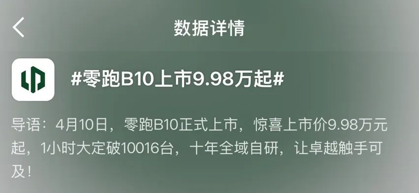 大家还记得吗,本月初上市的零跑B10,十万出头的价格,就给配了激光雷达和智驾,上市后1小时大定直接破了10000台。