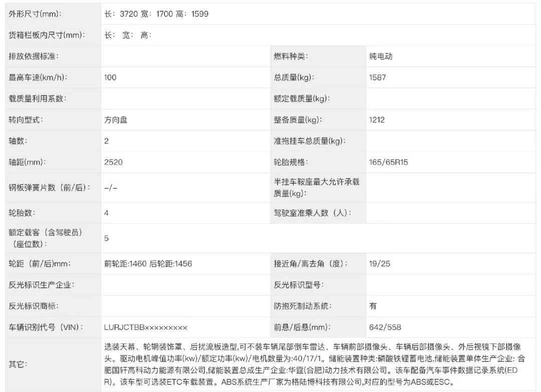 车身尺寸方面,新车长3720mm,轴距是2520mm,定位A0级纯电动车。
