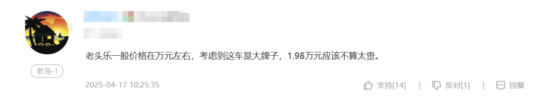 还有人吐槽,这顶多就是一个大牌子老头乐。