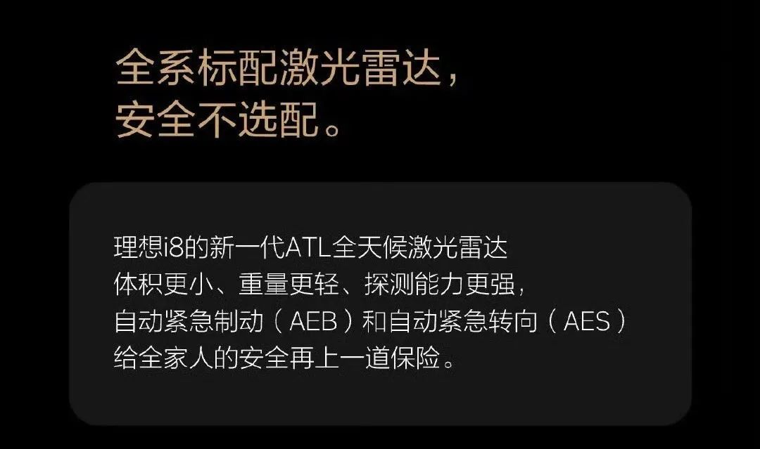还全系标配激光雷达,新一代ATL全天候激光雷达更小更轻,探测能力起飞,自动刹车+紧急转向这些保命功能全都有,安全性能直接拉满。