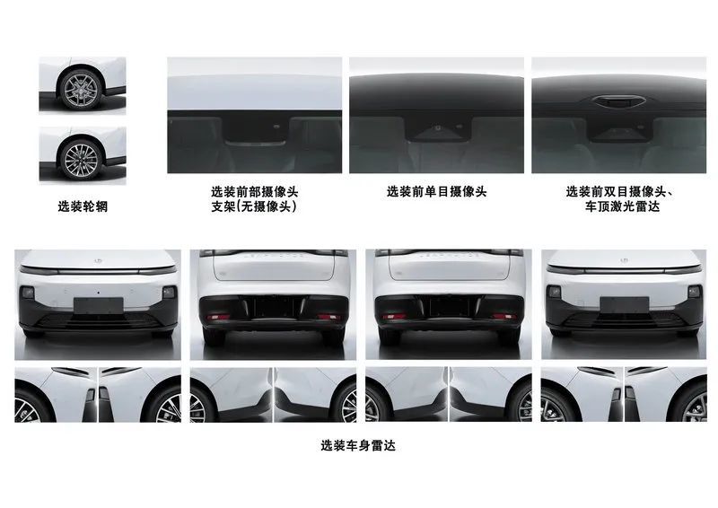 核心配置方面,显示单电机驱动系统,最大功率160kW,搭配磷酸铁锂电池。选装还有车顶激光雷达,高阶智驾估计要向B10看齐。