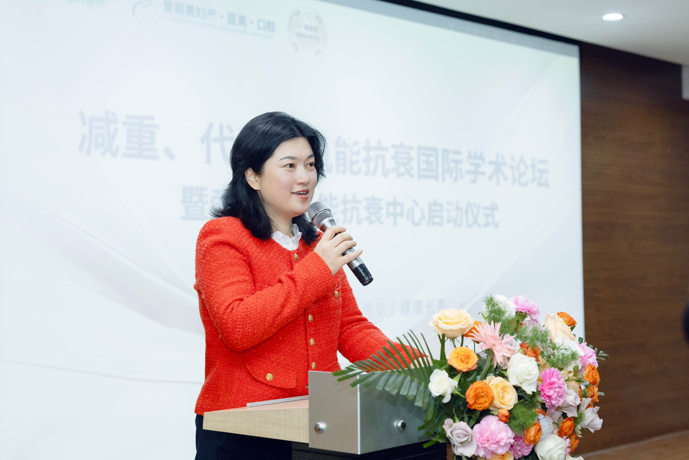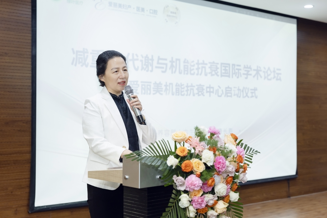 绿叶医疗集团执行主席刘奥娜通过线上平台致辞。她讲道,“过去十年,全球抗衰科学实现了从症状管理到系统调控的认知跃迁,不再满足于对抗单一衰老的表征,致力于优化整个代谢、炎症、衰老轴调控,我们正在见证人类健康管理范式的根本转变。烟台爱丽美机能抗衰中心,是绿叶医疗健康战略的重要单元,更是践行‘以真诚利他之心成就多元健康人生'的集团使命的重要平台。我们将积极携手多方,让抗衰科学真正成为可以普惠大众的健康解决方案,提供更有生命质感的生理年轻态服务。”