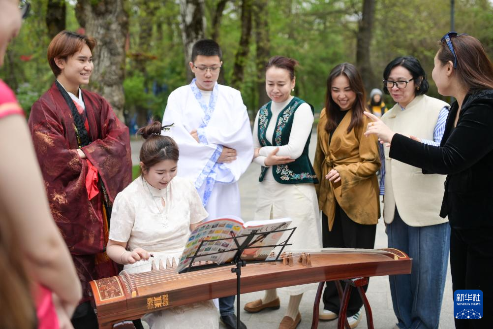 4月19日,在哈萨克斯坦阿拉木图,人们在“国际中文日”庆祝活动上观赏古筝演奏。