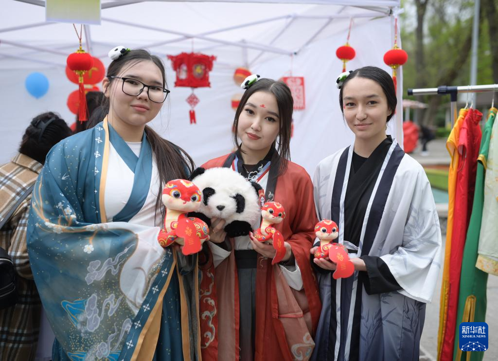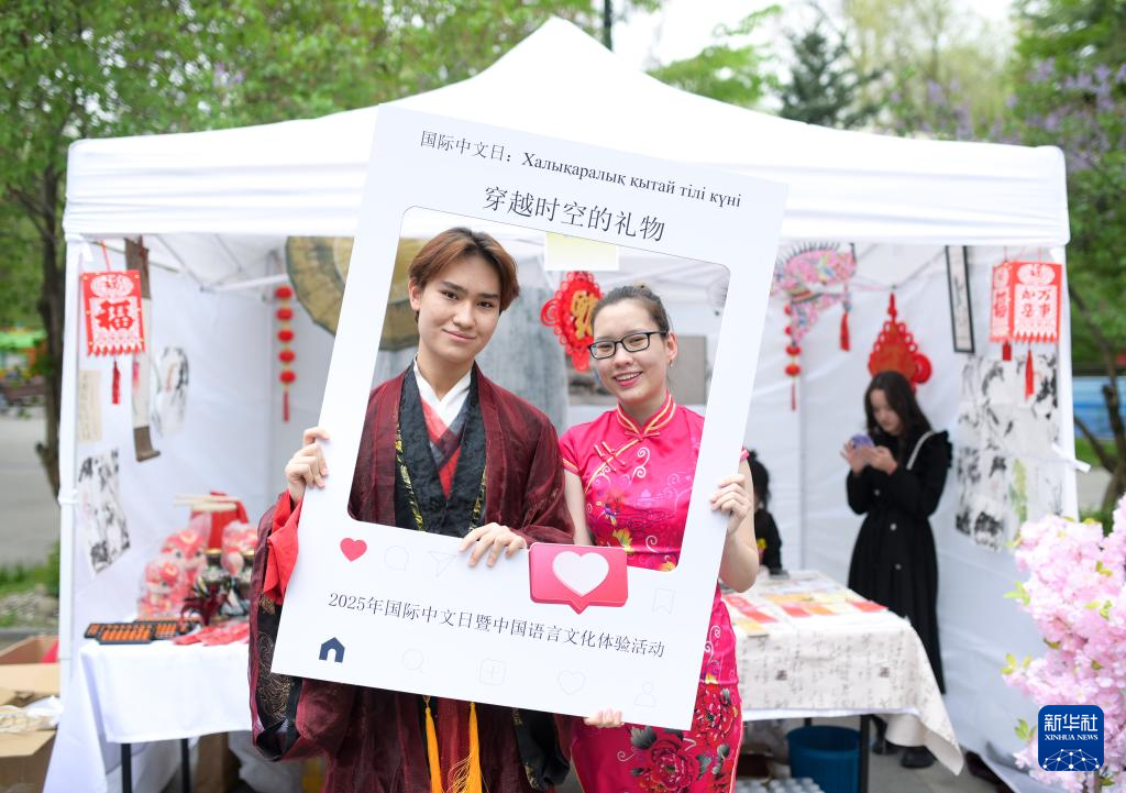 4月19日,在哈萨克斯坦阿拉木图,人们在“国际中文日”庆祝活动上留影。