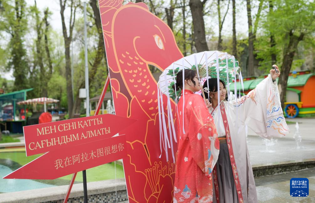 “国际中文日”庆祝活动19日在哈萨克斯坦阿拉木图中央休闲公园举办。本次活动以“中文:穿越时空的礼物”为主题,设置了包括书法、国画、汉服打卡、手工等中国文化体验活动,以及古筝演奏、互动游戏等。中哈政商学界代表、文化团体、中文专业师生代表和中国文化爱好者欢聚一堂,感受中华文化之美。