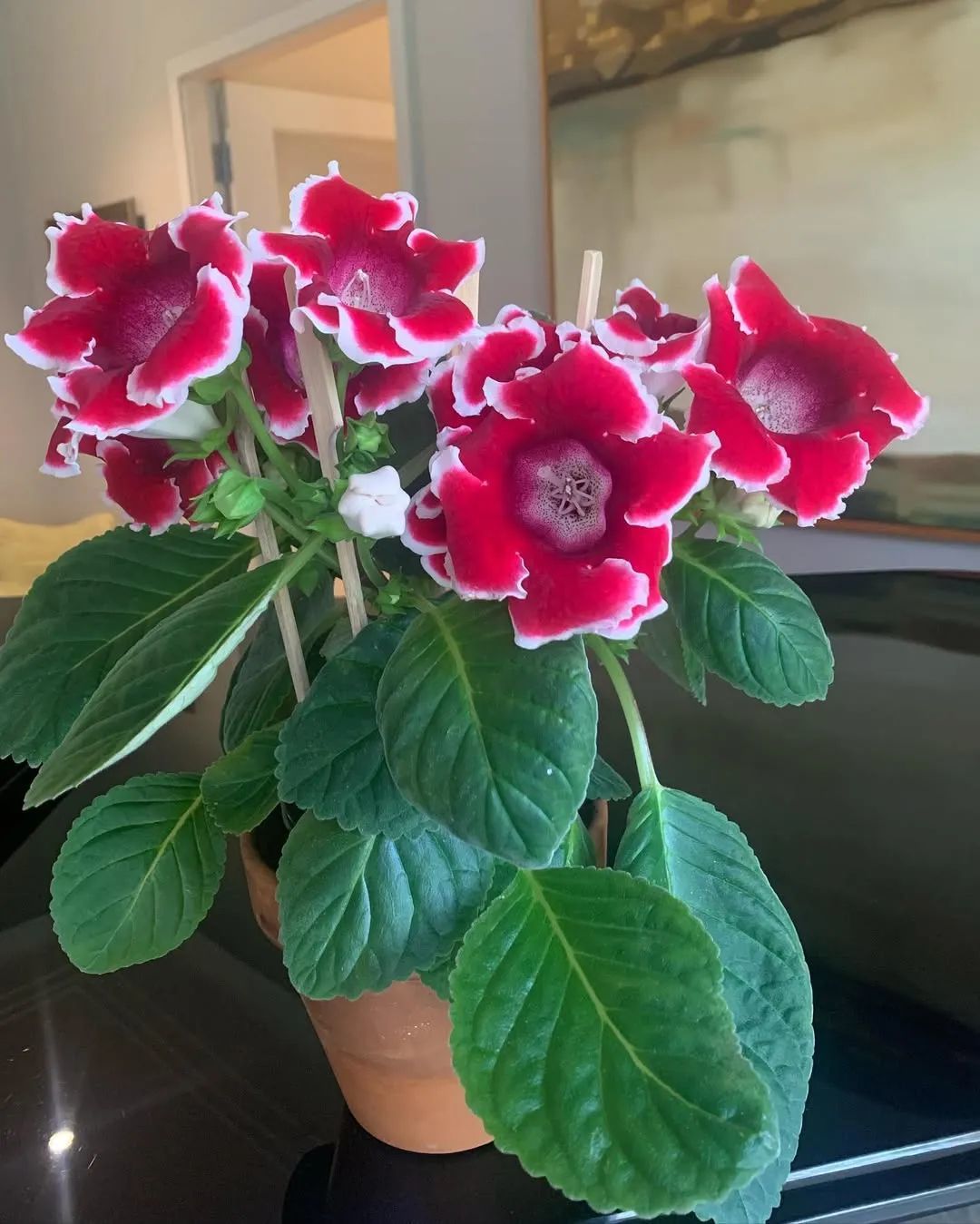 能在植物灯下或在朝北窗台开花的开花植株,那肯定要选大岩桐了,这种花对阳光需求比较少,有些许散射光就能开花。如果你家里阳光不多,又想养开花植物,那大岩桐就是不二之选。