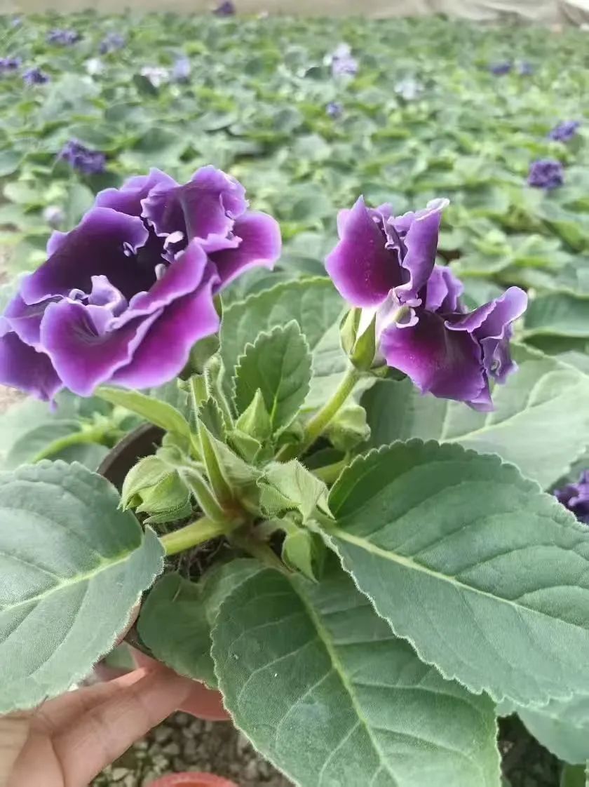 如果你喜欢大岩桐这种耐阴且没啥病虫害的开花植物,想要不同的品种,那可以在养花交流公众号的答疑团购群里和花友们一起团购,8.8元每盆,有4个品种可选(12厘米口径盆栽苗),包对版,全部带花发货!基地的实拍图如下。