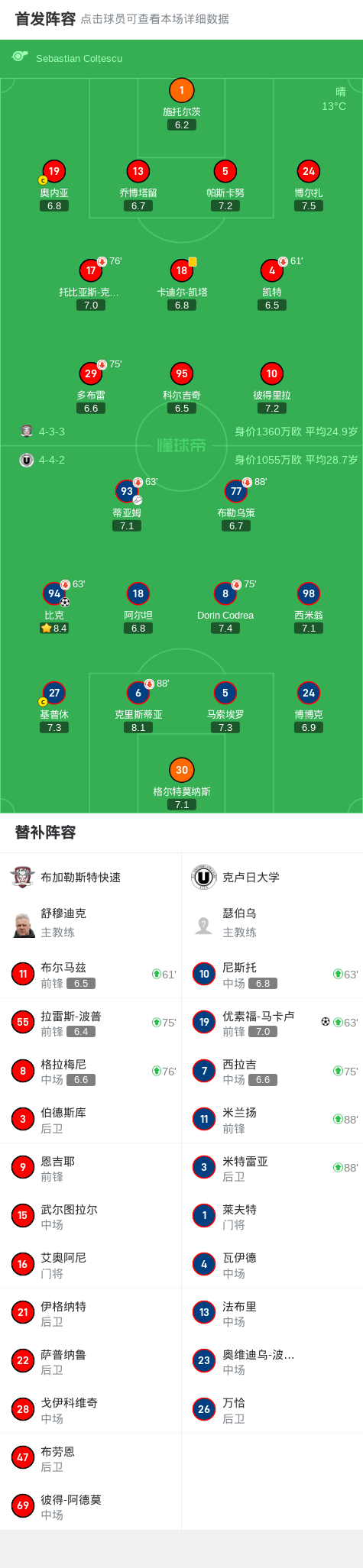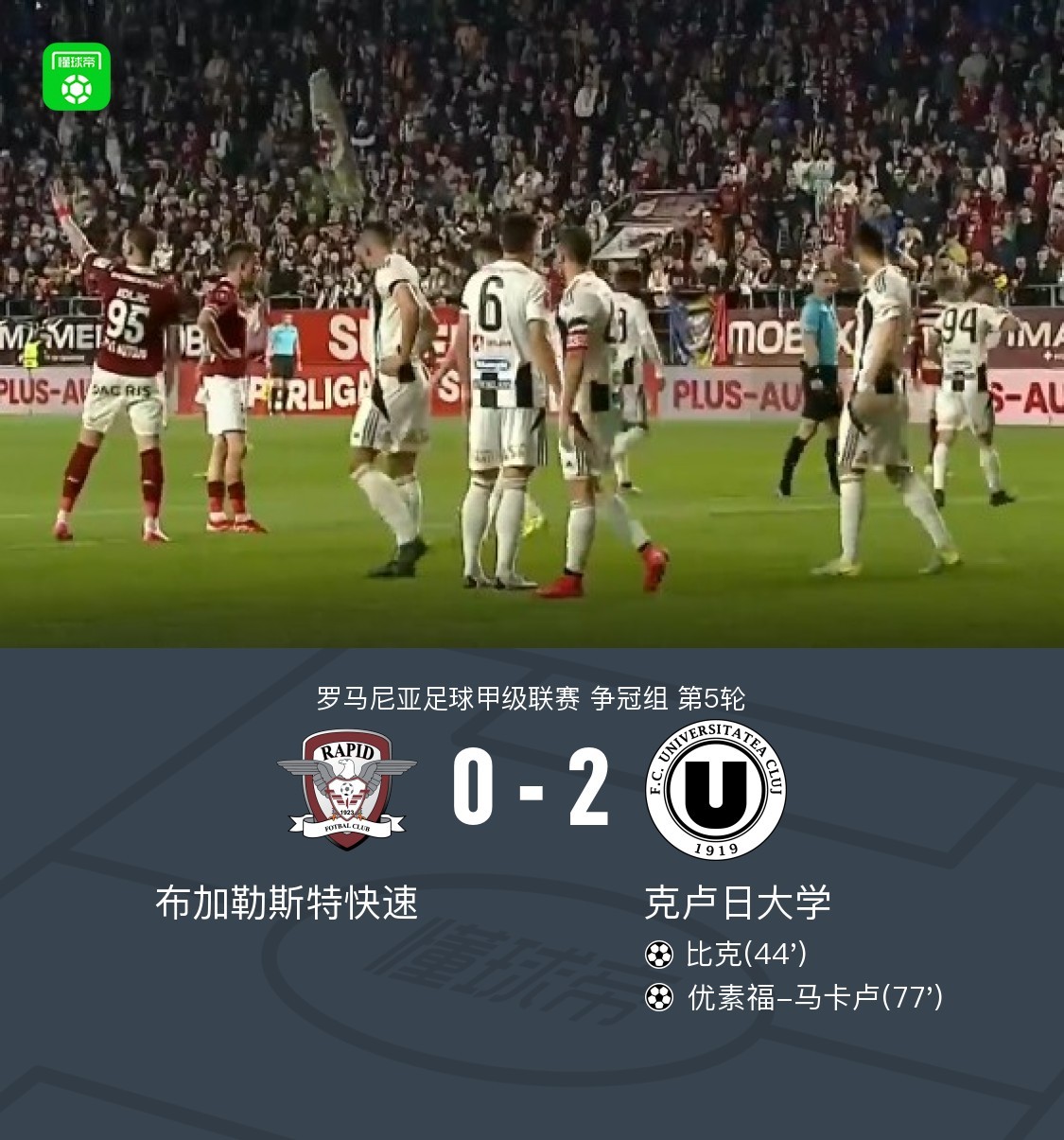 第44分钟,比克后点调整兜射破门,克卢日大学1-0