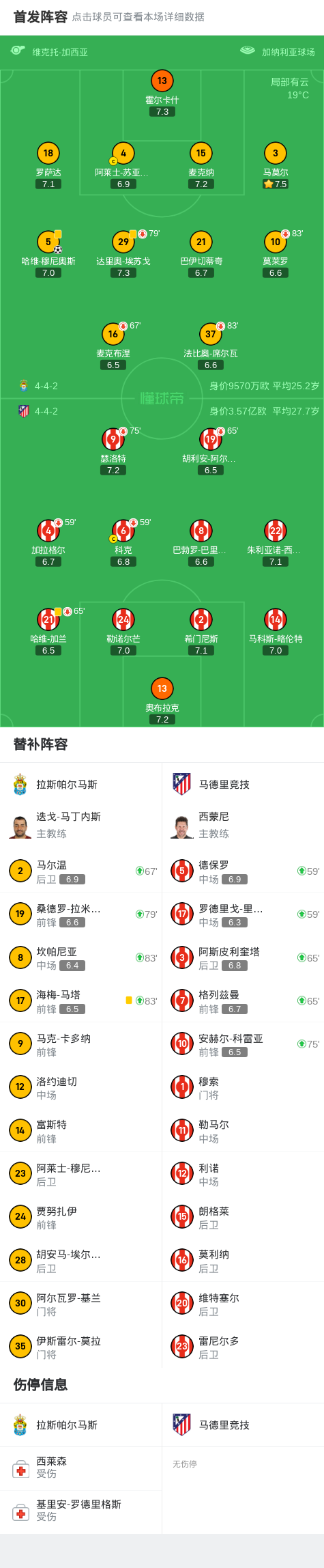 第65分钟,马竞换人,阿斯皮利奎塔、格列兹曼替补登场