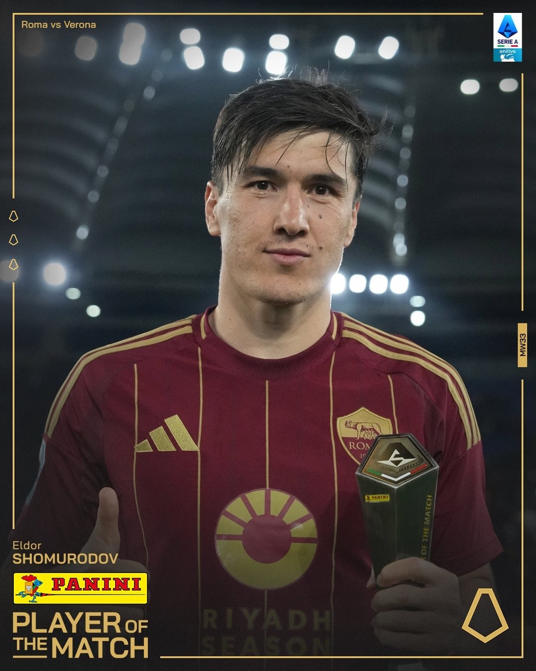 官方消息,肖穆罗多夫当选罗马对阵维罗纳一役全场最佳。
