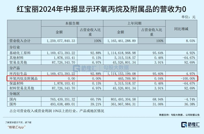 而红宝丽尽管公告称现有环氧丙烷生产装置进行升级改造,将环氧丙烷年产能10万扩建至25万吨,并预计2025年底进入试生产阶段。但目前事实就是,其还没有相关产品,2024年上半年,该业务营收骤降为0。因此客观来说,这只能算是一个期权,还有较多的不确定性。