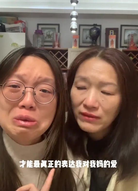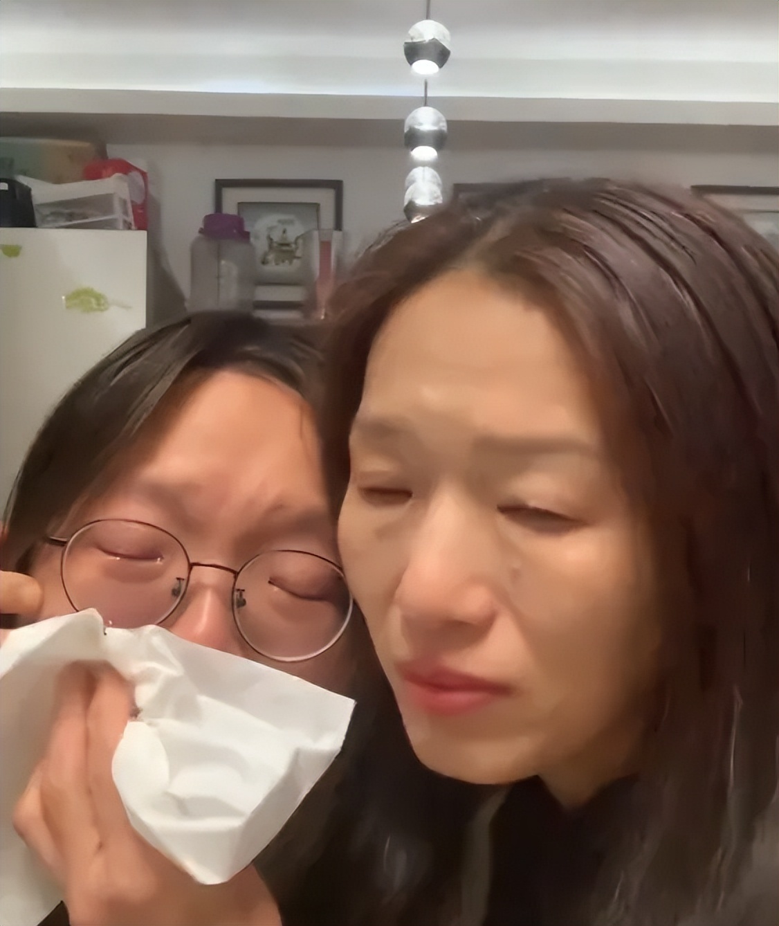 看到女儿情绪失控,谢浩男妈妈也一边为孩子擦眼泪,一边自己落泪。