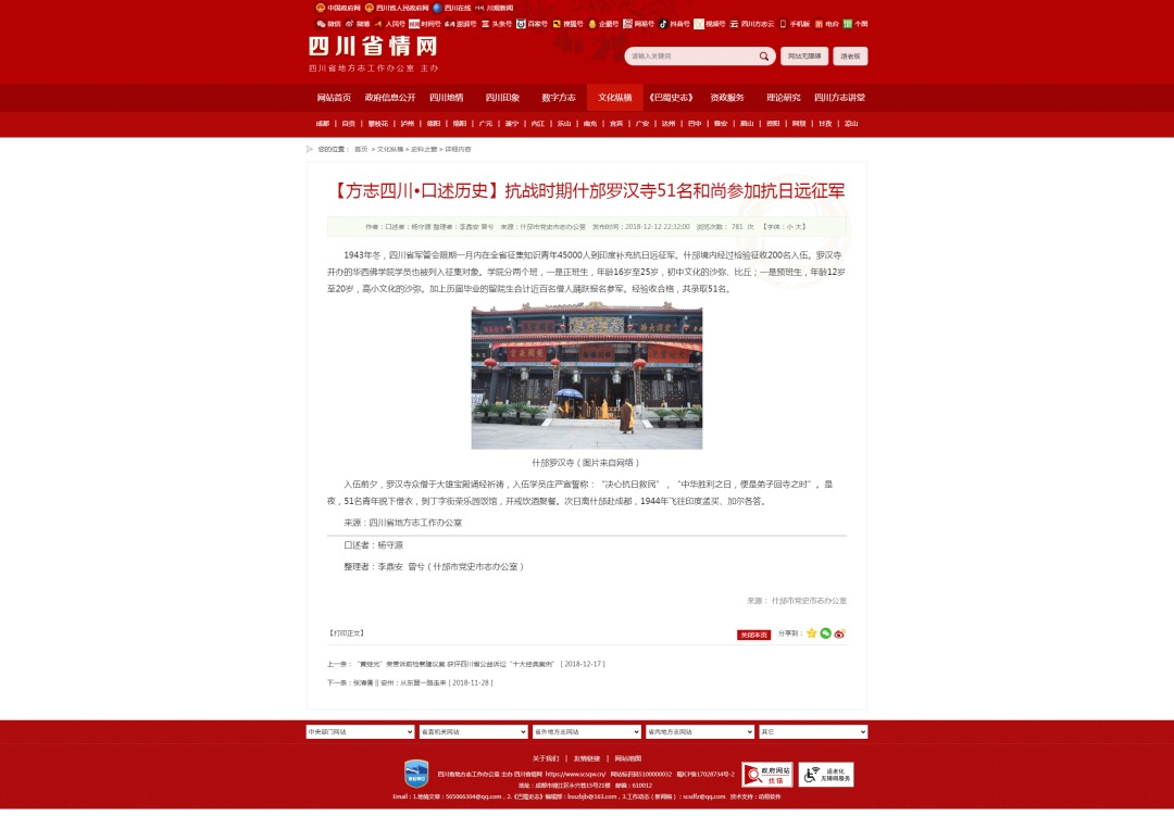 这是有官方明确记载的史料,51位来自什邡罗汉寺的僧人参加中国远征军,最后全部战死在对日作战的异国他乡战场上。