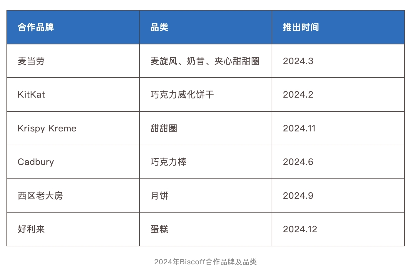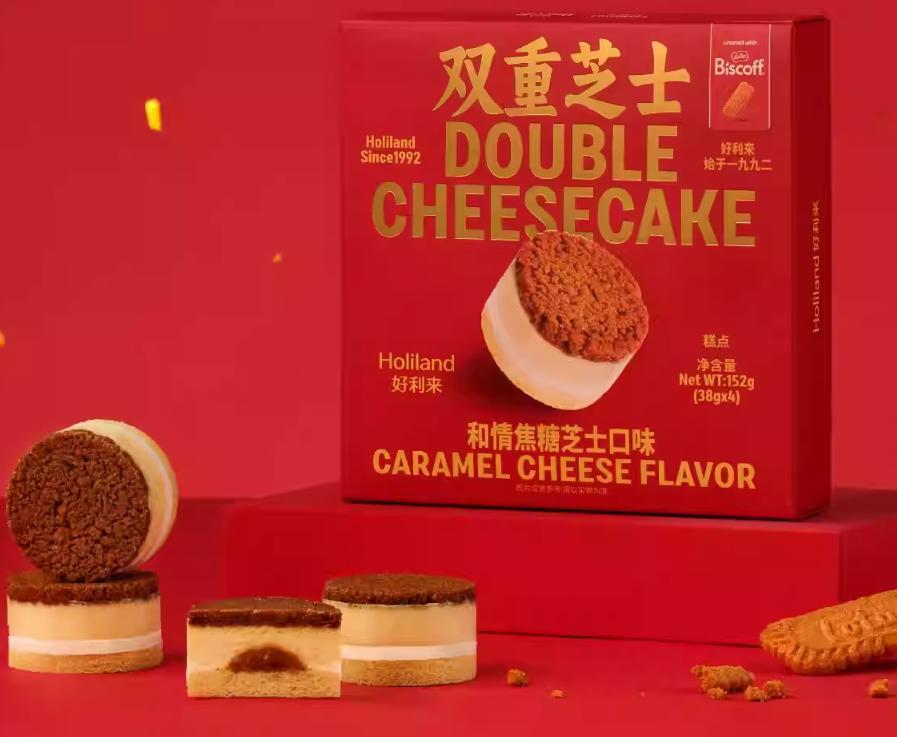 在中国市场Biscoff也有类似的尝试,如2024年中秋节,上海百年老字号“西区老大房”推出的焦糖麻薯月饼,添加了Biscoff的饼干酱和饼干碎。同年年底,好利来推出的“焦糖芝芝”“双重芝士”“焦糖莓果奶油蛋糕”三款新品,同样加入了Biscoff饼干碎。