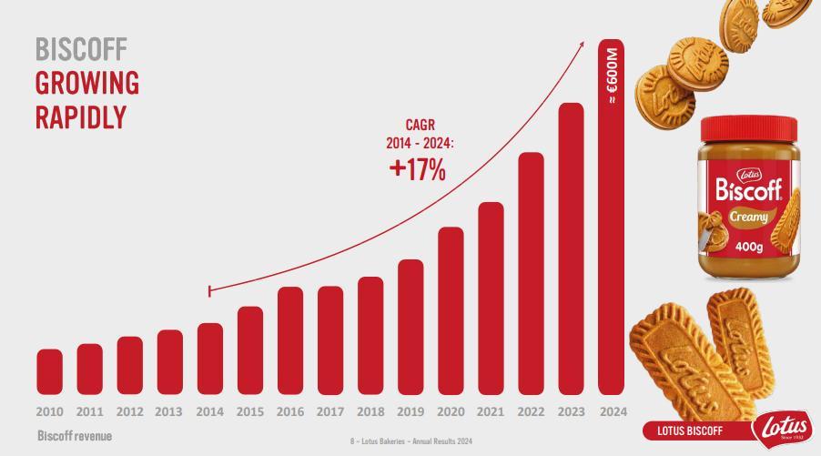 Biscoff的增长已至少持续了10年。据《金融时报》报道,2013至2023年间,Biscoff的销售额几乎翻了两番。[3]