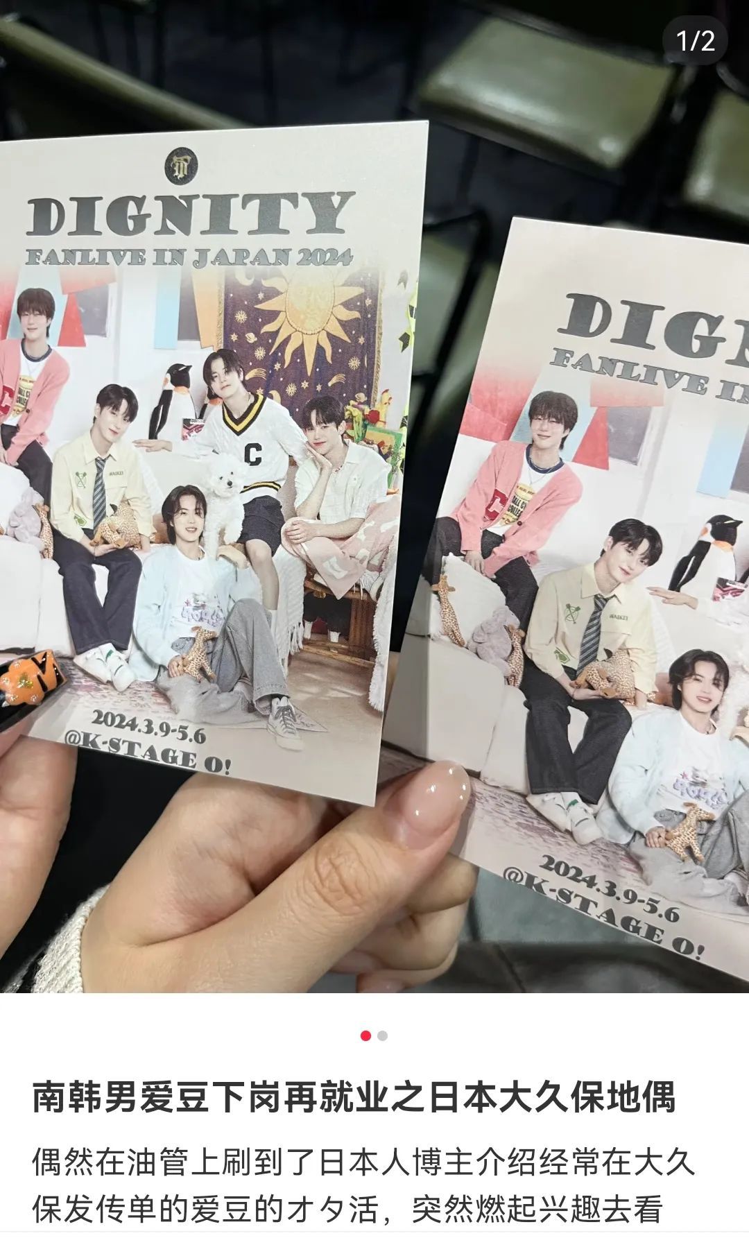 像在日本大久保的K-stage、Showbox两个剧场,便因诸多糊团发放演出传单、免费公演,乃至公开免费签售、举办minilive等活动,逐渐成为众多追星人打卡地。而这种以古早朴素的宣传手段来拔高人气、吸引粉丝的手段,也令Dignity、AWIN、KJRGL、WATWING等“糊糊”一定程度上突破了无人问津的困境。
