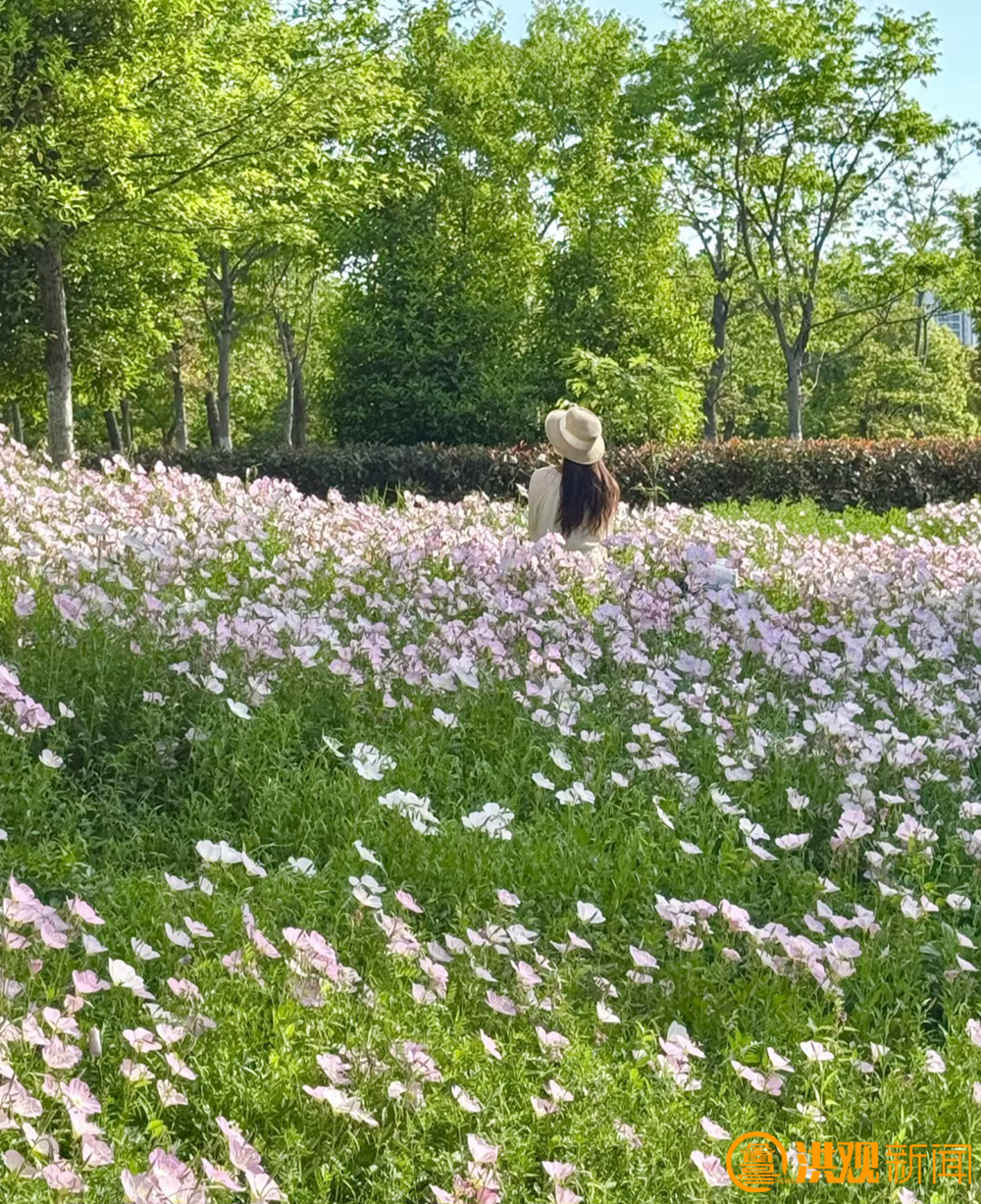 与此同时,南昌象湖湿地公园将春日的浪漫再次升级,月见草肆意绽放,粉嫩的花朵汇成浪漫的花海,宛如梦幻的粉色绒毯。一群身穿鲜艳服饰的阿姨们,手上彩色的丝巾随风飘动,与月见草一同绘就一幅绚烂的画面。