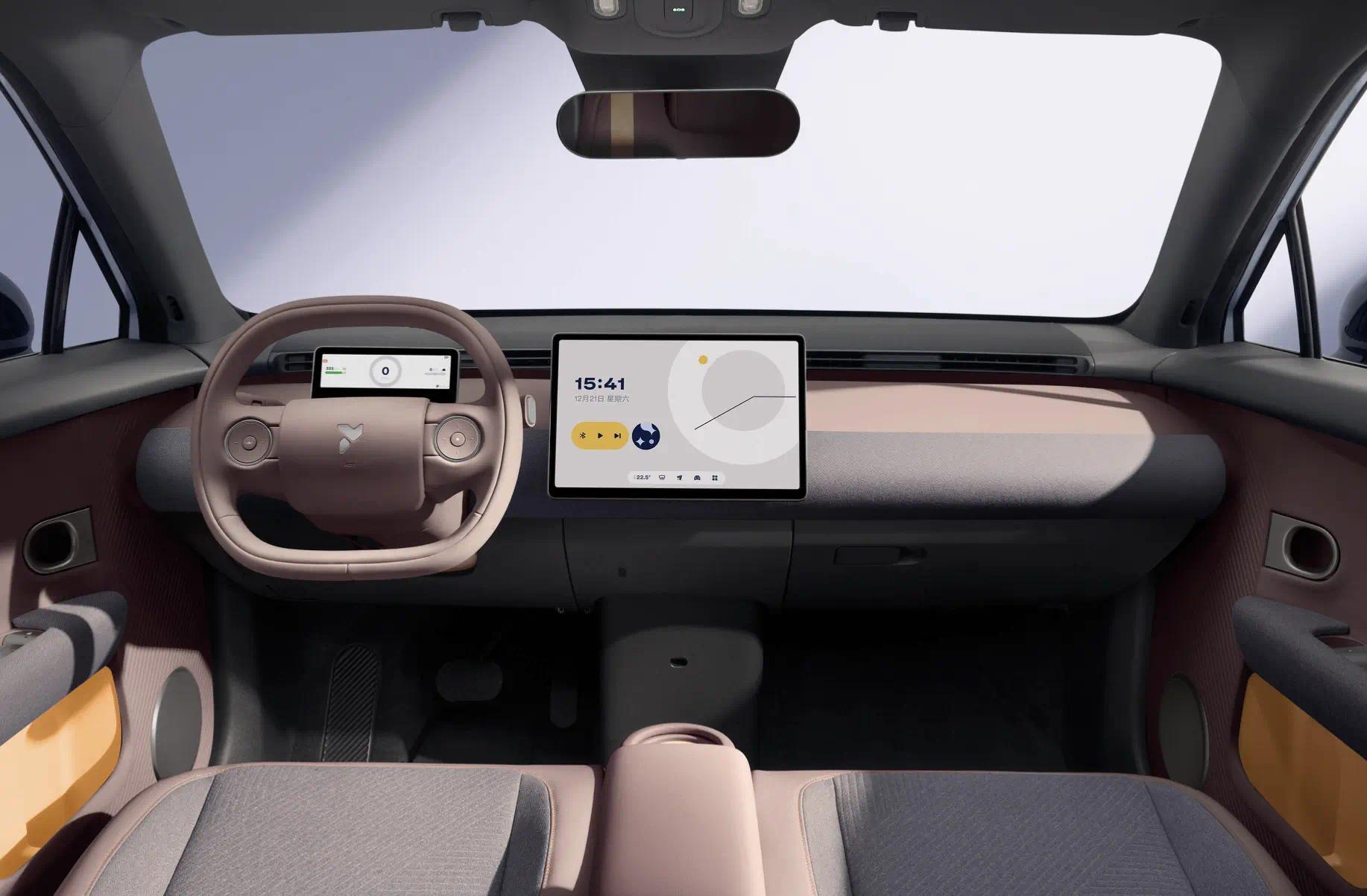 进入车内,萤火虫的内饰设计同样令人眼前一亮。提供惬意紫、松弛绿、温暖米、沉静黑四种配色,自在版采用可再生织物搭配环保皮革 pu 材质,以斜条纹设计语言营造出温馨氛围;发光版则使用 microfiber 超纤绒搭配环保皮革 pu 材质,座椅采用图案打孔设计,更显高端质感。