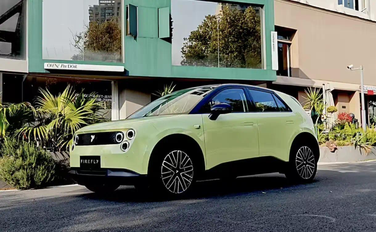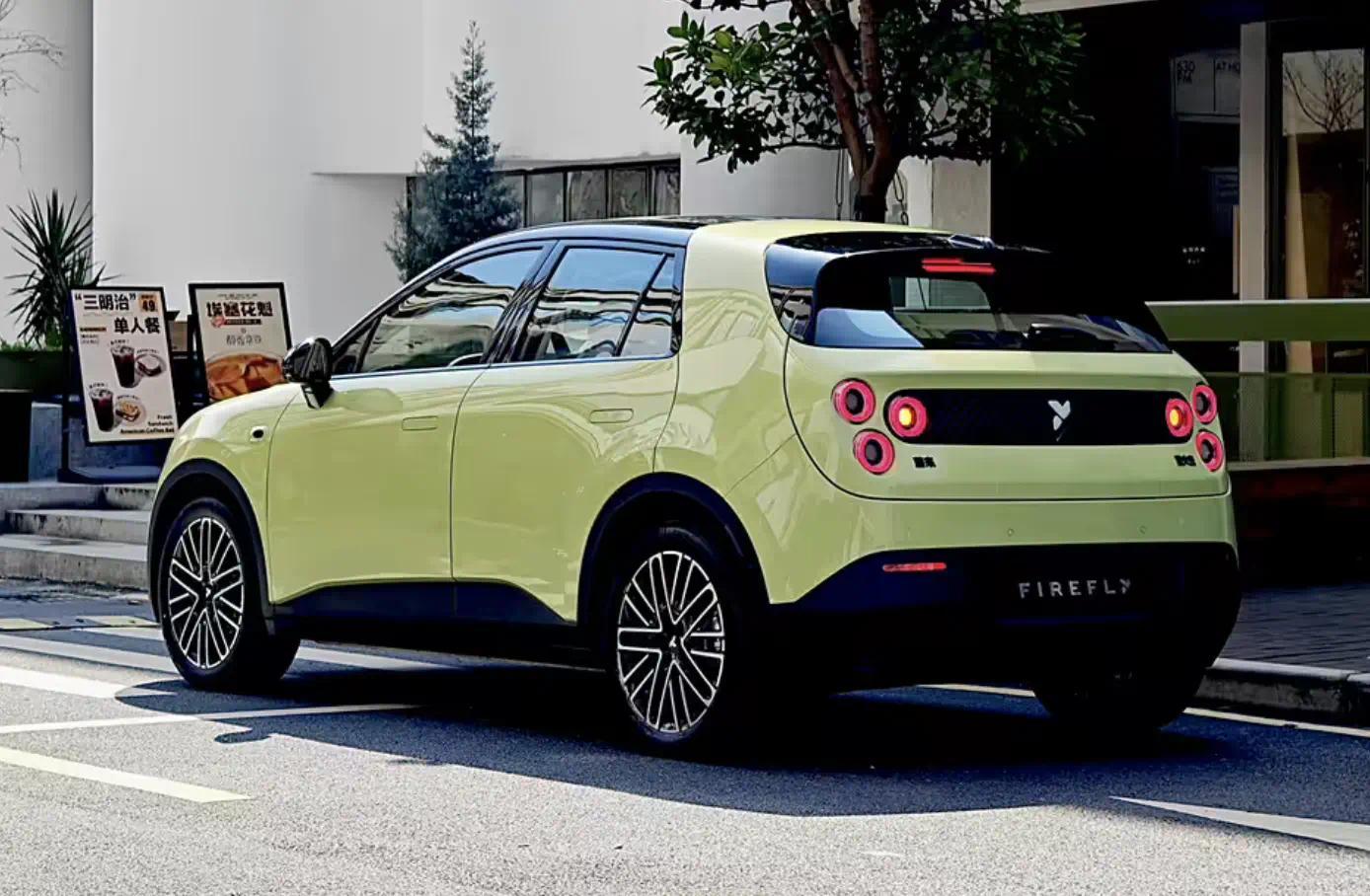 外观方面,萤火虫整体采用两厢车造型,极具时尚感与辨识度。车头采用纯电动车型常见的封闭式设计,搭配官方称之为 “三重奏” 的远近光一体投射式 LED 前大灯,三个光环组成的灯组可单独控制、独立点亮,拥有多变灯语,在夜晚行驶时格外醒目。
