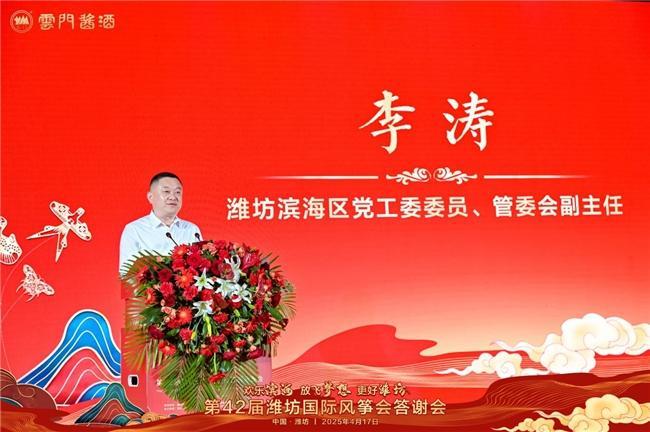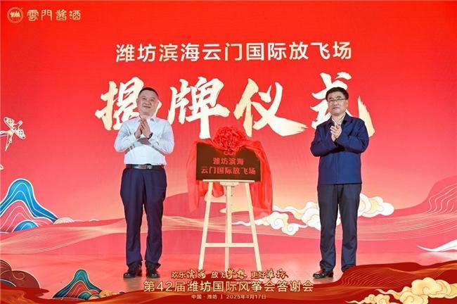 2025年4月17日晚,第42届潍坊国际风筝会答谢会上,备受瞩目的潍坊滨海云门国际放飞场揭牌仪式隆重举行。