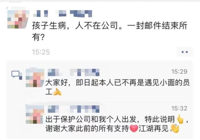 根据其微信评论区留言可知,该总监今年1月入职遇见小面,收到结束劳动关系通知时仍处于试用期。