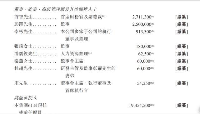 除宋奇外,其他管理层也深度参与其中:首席财务官兼副总裁许智持有3.94%;监事彭跃持有9.62%;多家子公司执行董事李彬持有0.3%;人力资源经理潘儒俊持有0.24%。此外,余下约42.88%的合伙权益,由61名现任或前任雇员持有,他们共计持有1945.45万股股份。