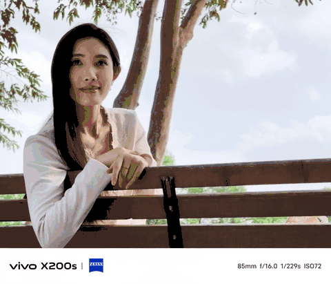 人像拍摄上,vivo X200s 也带来了全新的拍照方式,就是「胶片 live 人像」模式,只需要在人像模式打开「动态照片」即可,手机会抓拍一张带美颜算法的人像照片,同时记录拍照前后的画面生成 live 图。结合「负片」滤镜,vivo X200s 可以拍出极具氛围感的人像照片。