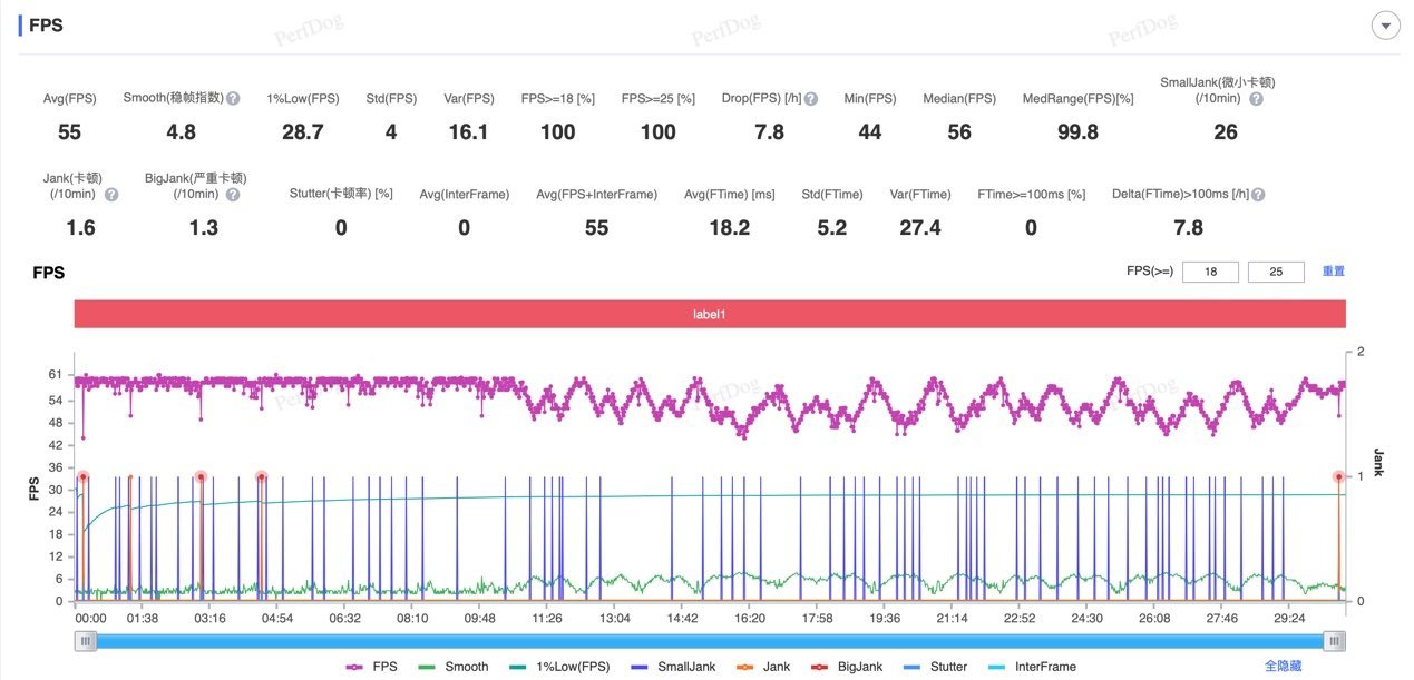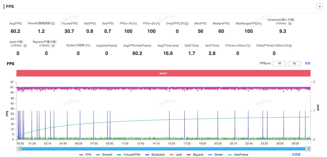 来看看实际的游戏表现,在室温 25 度的环境下,将 vivo X200s 的屏幕亮度设置为 200nit。在半小时的《原神》须弥城来回跑测试中,平均帧率为 60.2 帧,功耗为 5W,帧率图呈现一条直线,实际体验也是全程流畅。